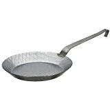 Wrought-iron pans are made from a single sheet of metal. They are thinner and therefore a little bit lighter than cast-iron pans. This makes them easier to handle while cooking.